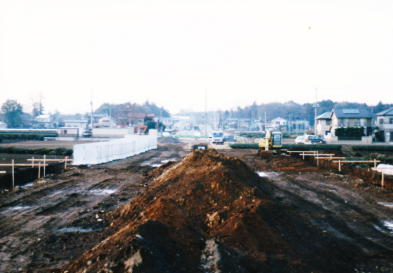 左側の建設中の建物が現在のうどん屋さん(旧ローソン)です