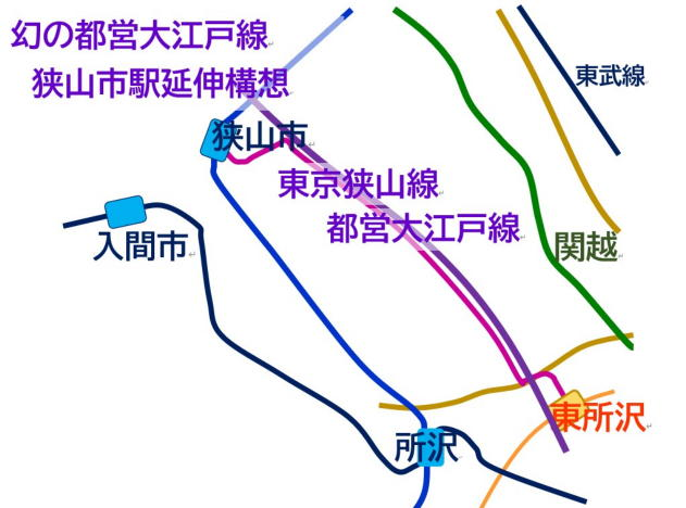 伝説の都営大江戸線 狭山市駅延伸構想 ![]() 狭山台完成1975年当時は 今でいう都営大戸線延伸構想があり なんと今では考えられませんが 光が丘 新座 東所沢 県道126号線 東京狭山線の地下を通り 狭山市駅まで延伸するという構想があり 1980年代本気で考えられておりました ![]() 現在の県道126号 東京狭山線 確かに1970年代の県道としては広すぎる 道路設計にも見えます 地下鉄構想があったことをうかがわせます 現在東京狭山線が全線開通し 全線が公共用地のため土地の買収交渉は カーブ箇所以外ほとんど無いのが現状ですが 人口減少など費用対効果が課題ではあります Wikipedia「都営地下鉄大江戸線」ページでも 実際に狭山市の記述が残ってあり ほんとうに本気で考えられていたようです 現在でも新座市が延伸構想を打ち出しております ※参考資料 Wikipedia「都営地下鉄大江戸線」ページ 伝説の都営大江戸線 狭山市駅延伸構想 Google MAP ※この地図は確定路線ではありません概ねこの辺を通ります Google MAP 拡大はこちらから |