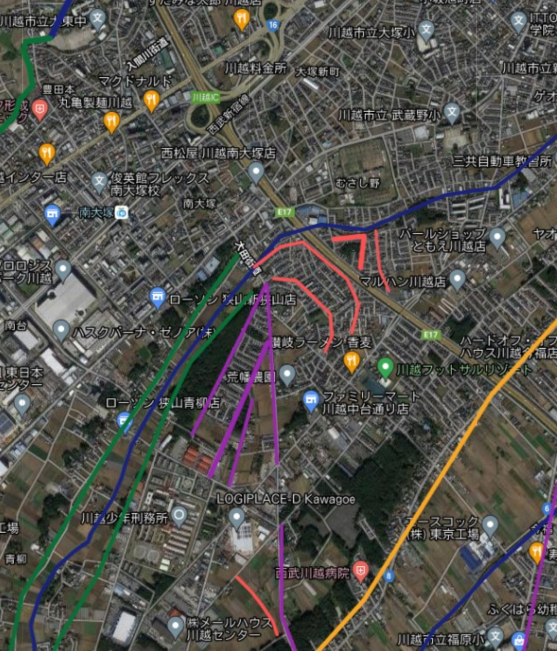 川越の南大塚から関越インター周辺に