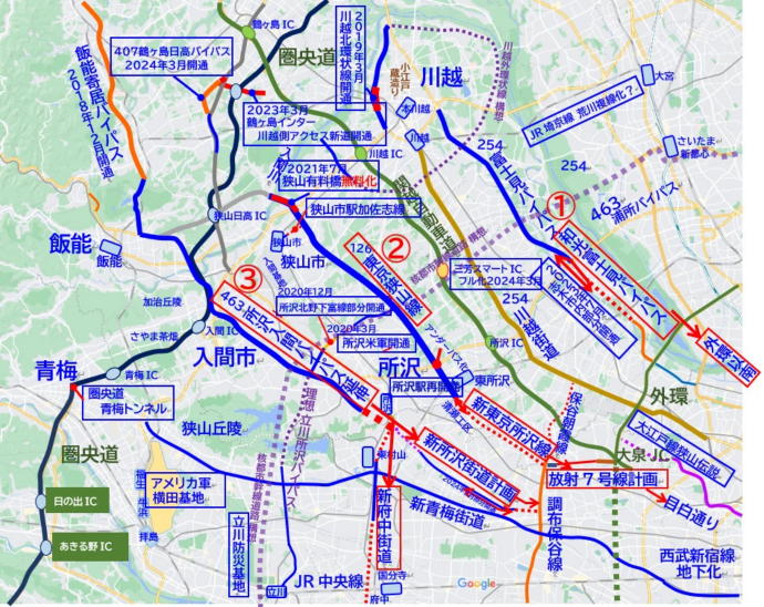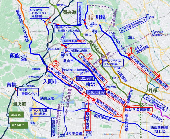 TOP 主要道路計画地図 ![]() Google MAPS版地図 ![]() 所沢川越狭山道路 工事開通情報 基地祭OPEN BASE 富士山絶景スポット 地学・地理 LINK |
