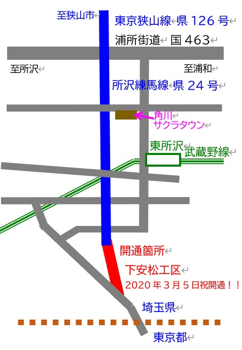 東京狭山線、練馬所沢線、新東京所沢線、放射7号線、