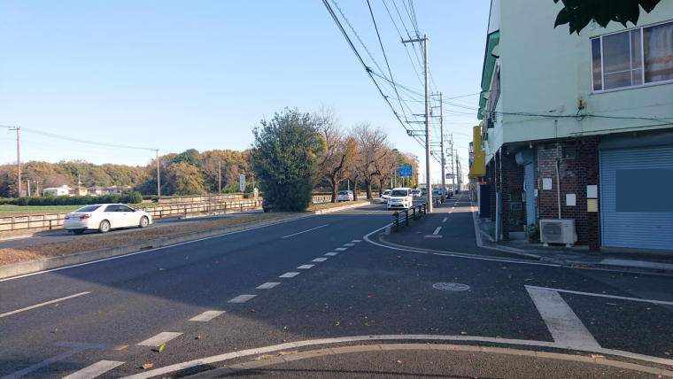 ここから国道16号に出るには右側にあるものすごい狭い