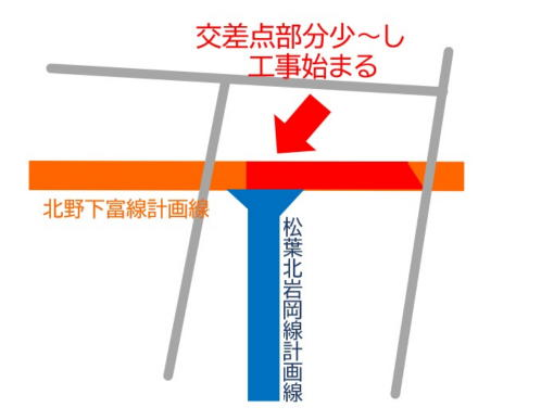 2021年5月情報 所沢北野下富線×松葉北岩岡線 交差点部分少〜しだけ工事始まる