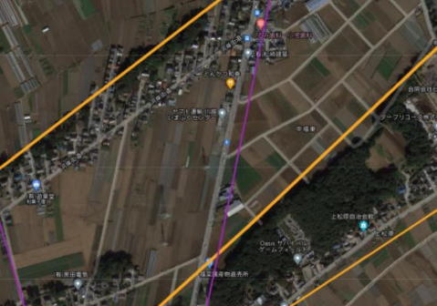 ちょうど川越辺りが日本の弧状列島の角(カド)に