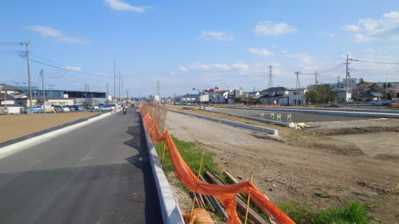歩道と側道がほぼ完成しております