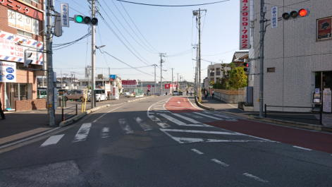 マルエツ前交差点の左側に未成線がありますが