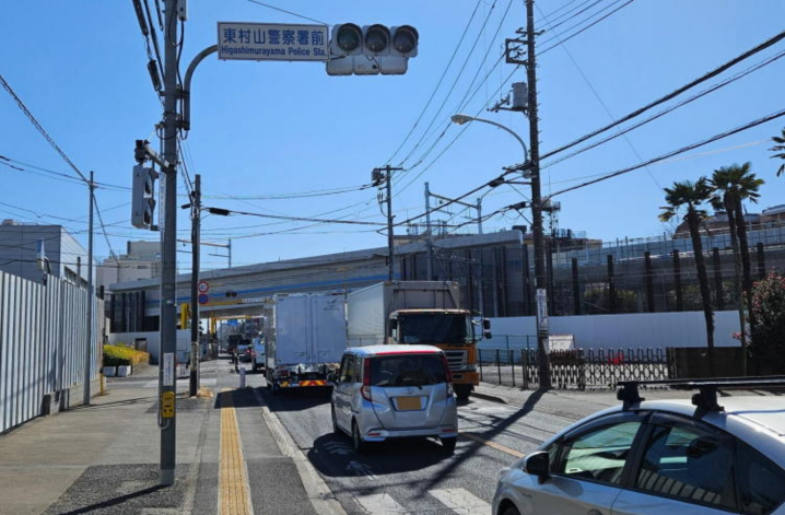 もうすぐで、府中街道が東村山駅立体交差で
