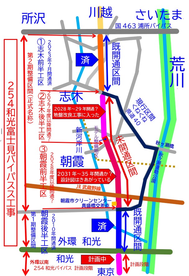 ![]() B朝霞市内前半 工区 2022年(R4)9月 武蔵野線交差部分 地表式立体交差構造に決定 2025年現在 設計図はほぼ出来上がっている模様 2027年以降に工事着手するのでは ないかとみられる 朝霞 新河岸川の河川敷エリア ![]() おそらくこの辺を通るのではないかと思われる ![]() 武蔵野線高架下に道路が予定されている場所 この付近に道路建設が予定されております しかしながら元々立体交差した線路の 下に道路を通す方式となったことで 鉄道橋の下を整備することですぐ 通行可能であればオーバーパスといった 橋を架けるなどの大掛かりな工事よりも 期間が短かくなることでしょう いかんせん、鉄道や川と交差する部分の 工事には多大な年月を要するのは 道路開通につきものであり 長い目で見た方がいいと思われます 埼玉県西部地区道路計画Google MAP ※この地図は確定路線ではありません概ねこの辺を通ります Google MAP 拡大はこちらから |