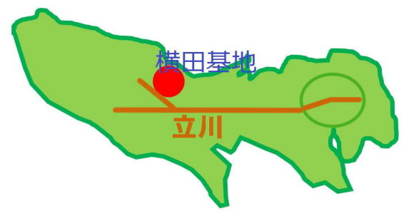 横田基地は東京多摩西部の福生市に位置し