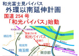 ![]() @志木前半工区 既開通(第2期整備区間) 2023年7月29日 浦所バイパスをオーバーパスし 志木市内前半、未開通区間半分の1.4q 部分開通した!! 大規模な工事開始から3年かかった ![]() 祝!! 部分開通記念 3年間 一気見 3分間ver. ![]() YouTube版 走行画像 2分間ノンストップ 志木市内前半詳細 1.地点@浦所バイパスオーバーパス 2.オーバーパス東京方面 3.地点A袋橋通り 4.地点AとBの中間地点 5.地点B県道36号線宿通り交差点 6.地点BとCの中間地点 7.地点C 県道40号さいたま東村山線 旧くらづくり前 A志木市内後半工区(第2期整備区間) 2024年( R6)年度 着手 整地・準備工事 2025年(R7)〜2027年(R9)年度 地盤沈下対策・盛土・盛土撤去 2027年(R9)年度以降 道路本体工事 B朝霞市内 前半工区(第2期整備区間) 2022年(R4)9月 武蔵野線交差部分 武蔵野線の高架の下を通る 地表式立体交差構造に決定 2025年現在 設計図はほぼ出来上がっている 2025年 今まで見られなかった草刈り作業始まる 2027年以降に工事着手するのでは ないかとみられる C朝霞市内後半工区(第1期整備区間) 既に開通済 和光市区間が2010年(H22)に暫定2車線開通し 2020年3月に全線4車線化完了し完成している D外環以南延伸工区 「国道254和光バイパス」という正式名称で 外環以南については埼玉県と東京都が協議し 2019年(令和元年)8月に新たに計画が決定した ![]() 和光富士見バイパス外環以南延伸計画 「国道254和光バイパス」計画始動!! 254和光富士見バイパス概要 一般国道254号線は東京都文京区を起点に 埼玉県西部地域を縦貫し、 長野県松本市に至る延長284kmの路線で、 埼玉県西部地域の富士見市から外環和光市に 至る区間を254和光富士見バイパスと呼ばれており、 埼玉県西部地域では並行する国道254号線川越街道が ひっ迫し、沿道地域の車両の流入など 道路環境の早期の整備、災害緊急時の 輸送道路の確保が現在求められており 早期の整備が求められている 埼玉県西部地域の主幹となる幹線道路で あります 県整備事務所公式資料 国道254号和光富士見バイパスPDF パンフレット ![]() 出典 県整備事務所 完成予想図 整備イメージPDF 浦所街道463号線下南畑〜県道40号くらづくり前まで 未来を想像させる完成度の高い整備イメージです ![]() 出典 県整備事務所 埼玉県西部地区道路計画Google MAP ※この地図は確定路線ではありません概ねこの辺を通ります Google MAP 拡大はこちらから 過去の月刊情報